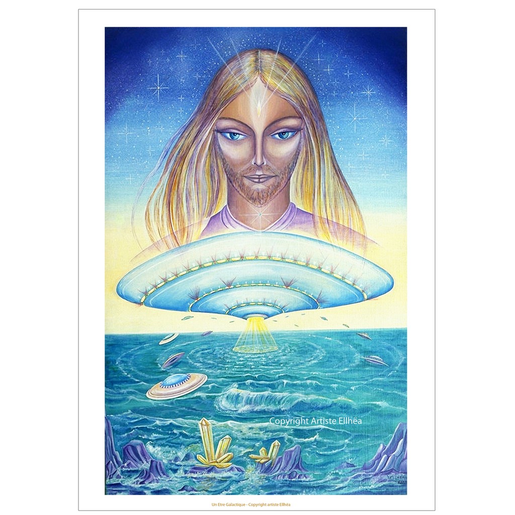 Entrez en contact spirituel avec un être galactique éveilleur, en contemplant cette affiche d'art qui saura vous transporter dans une dimension de paix et d'enseignement.