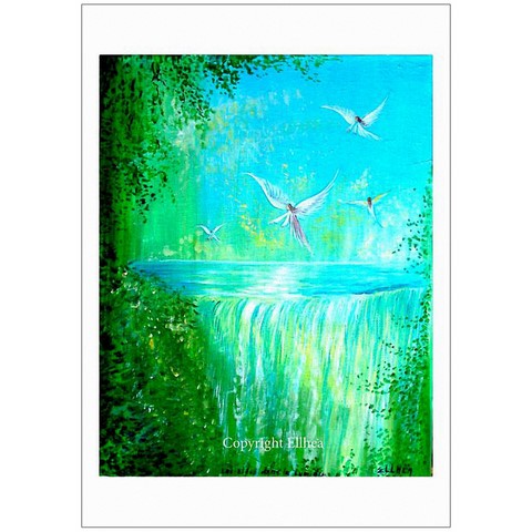 Les petits elfes dans la lumière survolent les rivières et les sources. Ils transmettent de belles énergies de paix à tous. Méditez avec eux en vous promenant ou en contemplant ce poster.